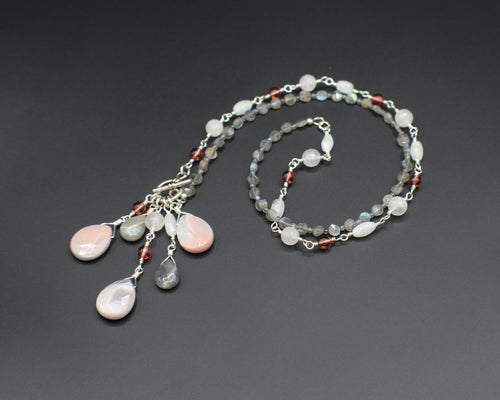 The combination of organic gemstones and handcrafted metalwork creates a unique piece that's both bohemian and sophisticated. The varied tones of the jaspers provide grounding earth energy, while the neutral labradorite grounds the look.